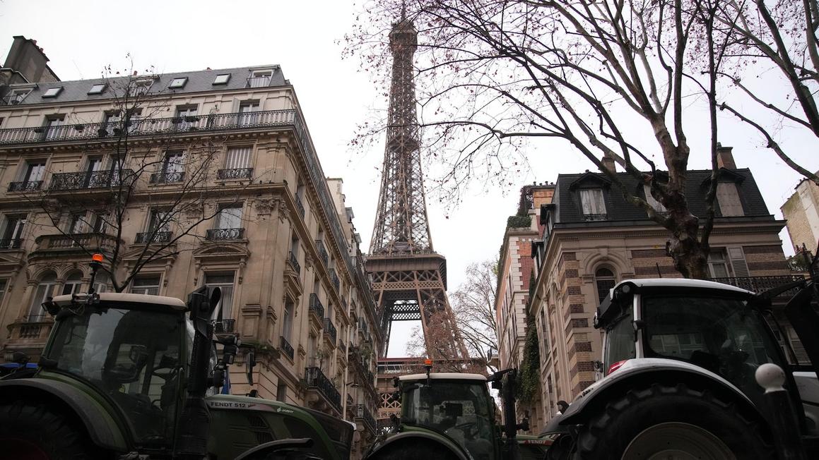 Bộ Nội vụ Pháp cho biết, một số máy kéo đã tập trung tại trung tâm Paris, gần Khải Hoàn Môn và khu vực Tháp Eiffel, bất chấp lệnh cấm. Các đoàn máy kéo đã “đi tắt và vượt qua”, theo thông báo. Những lo ngại của nông dân về thỏa thuận thương mại Mercosur kết hợp với sự tức giận về các biện pháp y tế của chính phủ chống lại dịch bệnh ở gia súc, ông Perez nhấn mạnh.