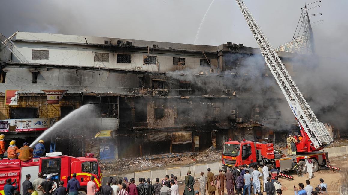 KARACHI, Pakistan – Số người thiệt mạng trong vụ hỏa hoạn lớn tại một trung tâm thương mại ở Karachi, thành phố lớn nhất Pakistan, đã tăng lên ít nhất 10 người sau khi lực lượng cứu hộ tìm thấy thêm bốn thi thể trong đống đổ nát trong đêm. Vụ hỏa hoạn bùng phát tại khu phức hợp Gul Plaza vào cuối tuần, thiêu rụi nhiều cửa hàng, nơi chứa mỹ phẩm, quần áo và hàng nhựa.